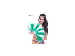 Peacock Feather Belly Dancing Fans For Dance Competition Green + White Color